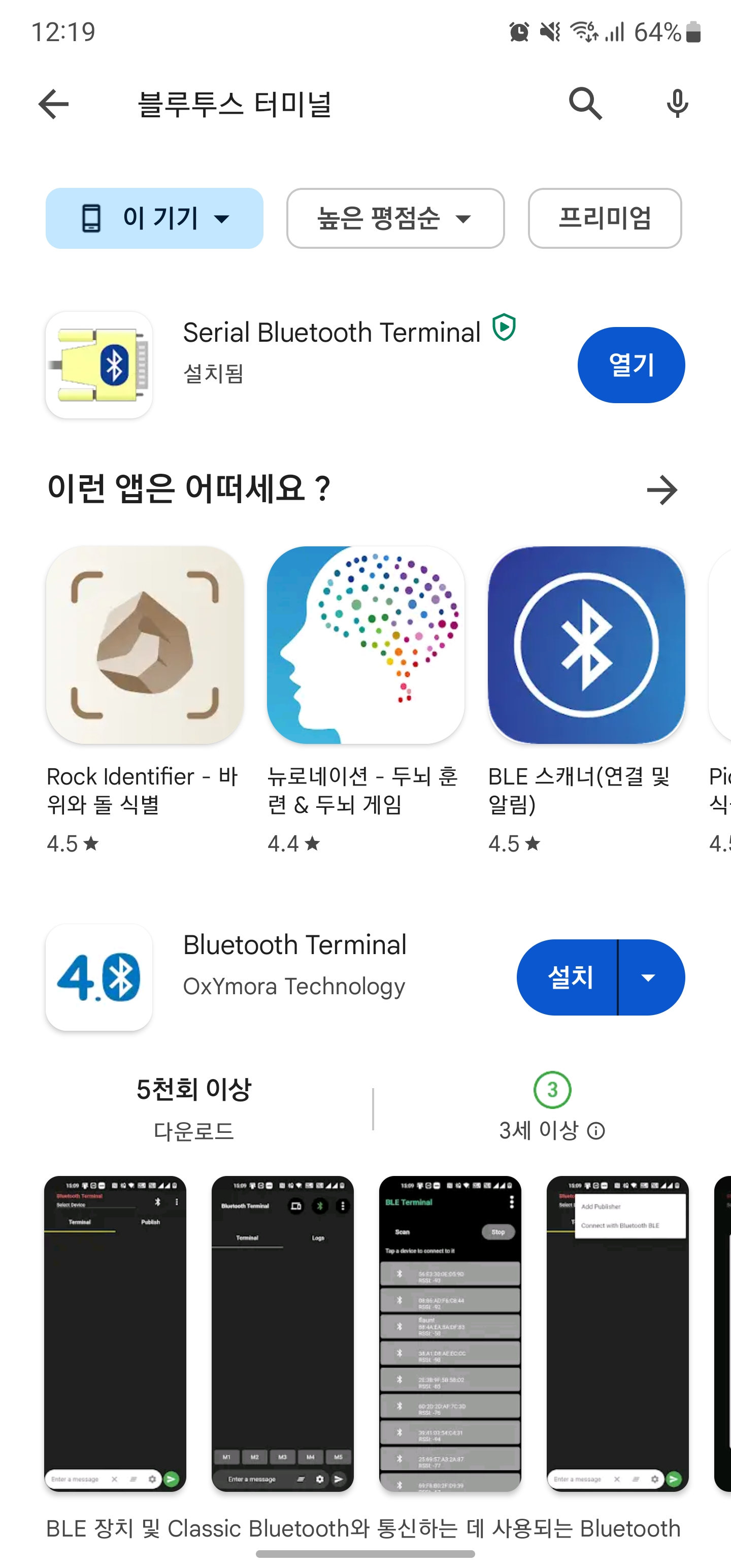 블루투스 터미널 검색 후 설치(안드로이드)