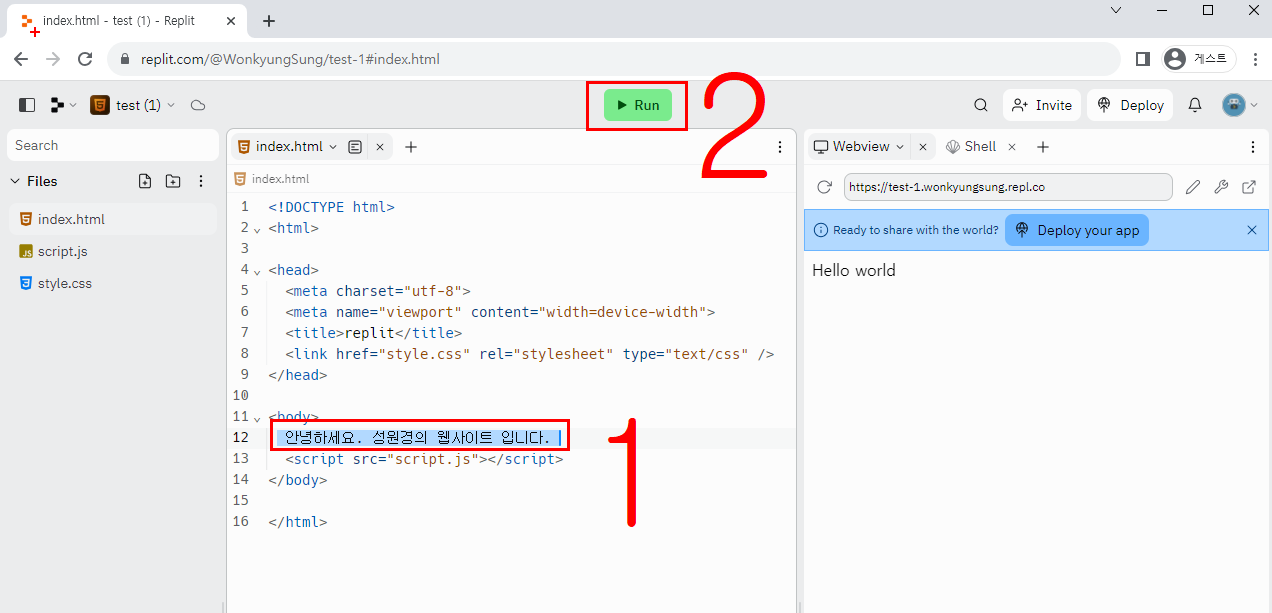 기본적인 문구를 작성한 뒤, Run 버튼을 눌러보자.
