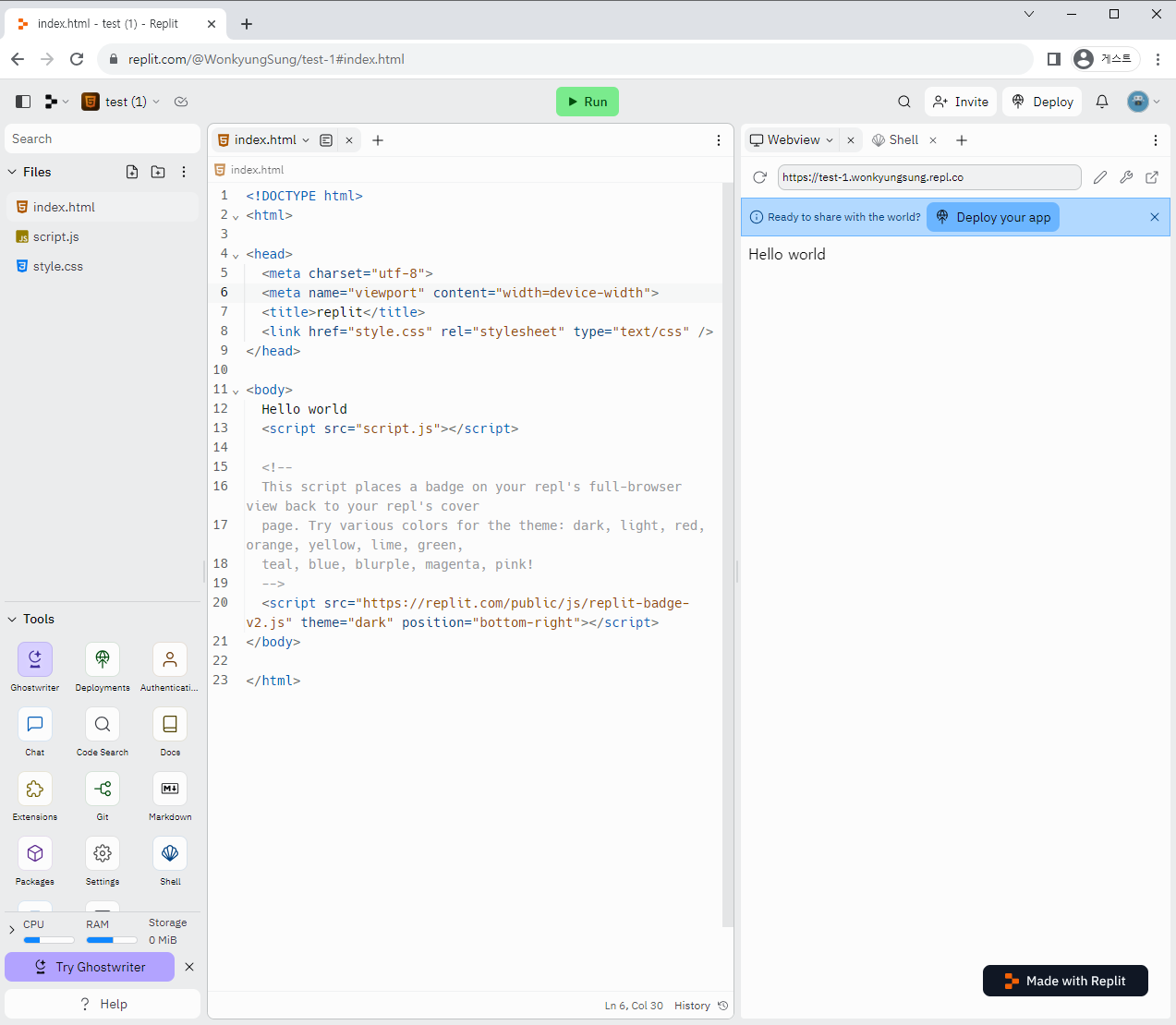 * replit 이란 ? : 웹사이트를 만들 수 있는 웹사이트